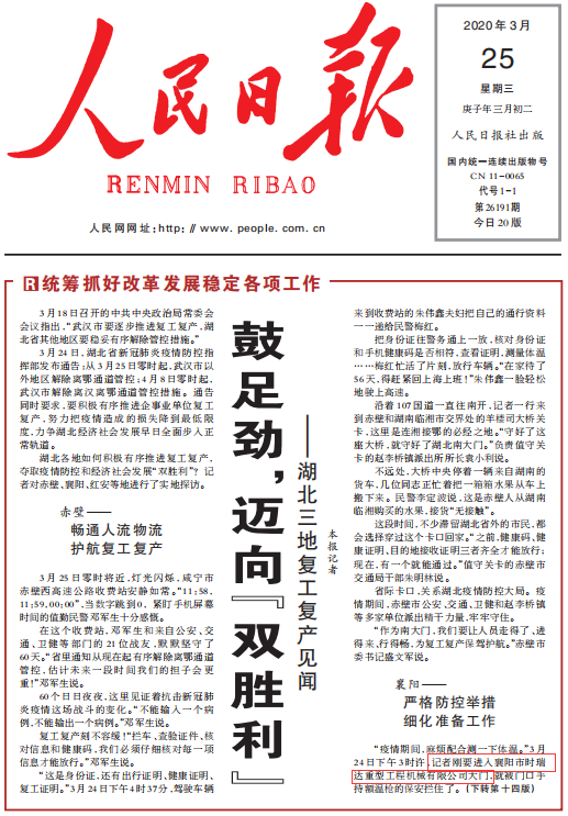 登载了华体会线上平台(集团)官方网站复工复产情况 (版面红框右下角)