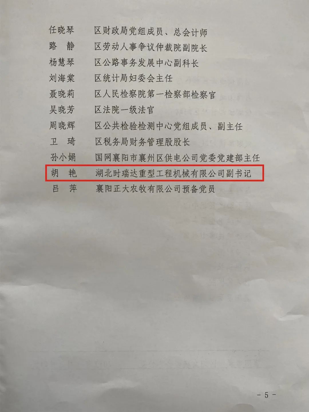 胡艳同志荣获襄州区“三八红旗手”荣誉称号